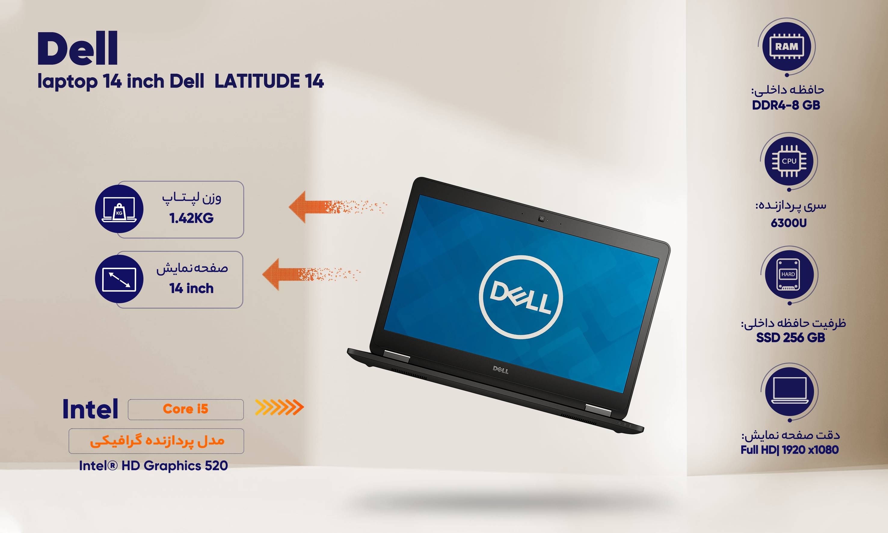 لپ تاپ استوک دل مدل لتیتود E7470