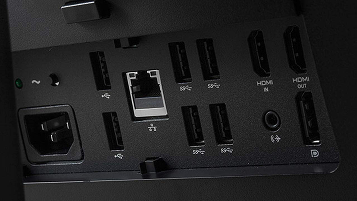 در قسمت پشتی دستگاه نیز بازاری از درگاه های ورودی و خروجی را خواهیم یافت. 4 عدد درگاه USB 3.0، 2 عدد درگاه USB 2.0، درگاه های ورودی و خروجی HDMI، پورت Display، پورت AUX، پورت LAN، یک درگاه اترنت (RJ-45) و محل اتصال کابل برق کامپیوتر، همگی در این قسمت تجمع کرده اند.وب کم 2 مگاپیکسلی All in one Dell 9030 نیز درست در وسط حاشیه بالایی دستگاه و بالای نمایشگر واقع شده است و دارای یک پوشش حریم خصوصی به منظور جلوگیری از ورود هکر ها به حریم شخصی کاربر است
